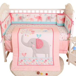 Lovely Elephant Pattern Baby Crib Bedding Set Toddler Cot Bed Set